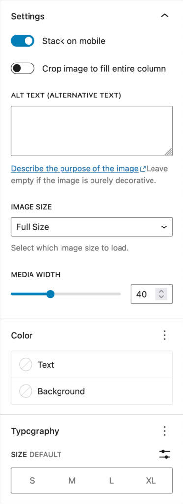 - Click and drag this scale to increase or decrease the width of the media item in the block. This will automatically make the content/text side of the block bigger or smaller in relation to the media width.
